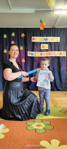Pierwsza ważna uroczystość w grupie dzieci 3-letnich Mądre Sówki w Przedszkolu Publicznym nr 3 w Środzie Śląskiej, którą prowadzą panie Ewa Bartoch i Beata Wandzio.16.10.2023 odbyło się pasowanie na przedszkolaka.