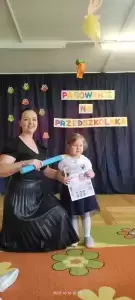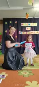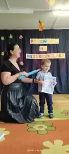Zanim to nastąpiło, dzieci pokazały ile się już nauczyły. Zatańczyły, zaśpiewały, powiedziały wierszyk. Pani dyrektor Aleksandra Karcz-Cieśla pasowała każde dziecko do rangi przedszkolaka.