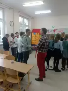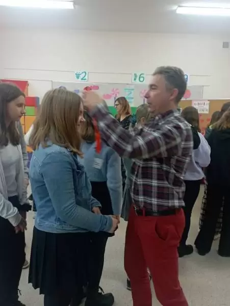 Uczniowie uroczyście przyrzekali wypełniać swoje wolontariackie zadania zgodnie z Etycznym Kodeksem i Regulaminem Szkolnego Koła Wolontariusza. Dyrektor p. Paweł Żurek wręczył wolontariuszom plakietki ufundowane przez Radę Rodziców, podziękował za dotychczasowe działania i pożyczył owocnej pracy w kolejnych wolontariackich realizacjach.