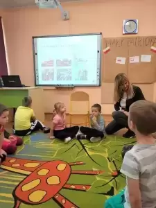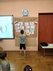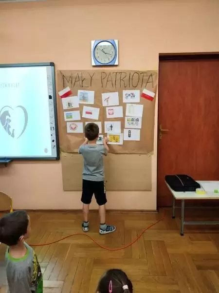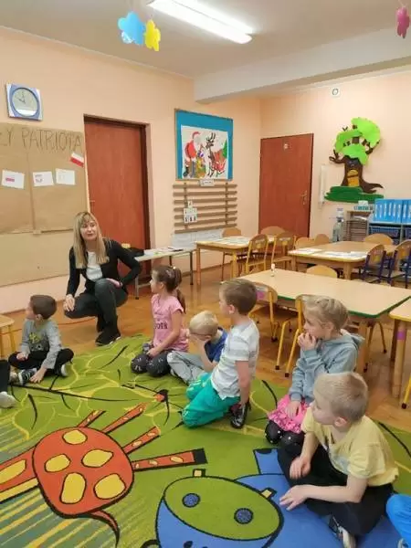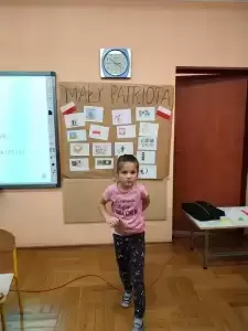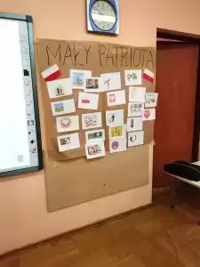 Przedszkolaki poznały historię państwa polskiego, przypomniały sobie symbole narodowe i dowiedziały się kto to jest patriota. Wspólnie z panią dyrektor wykonały gazetkę tematyczną "Mały patriota", wymieniając obowiązki jakie powinien on spełniać.