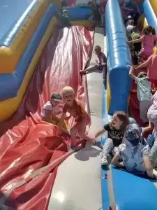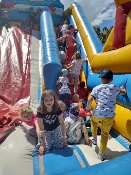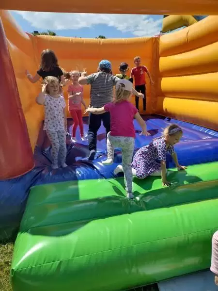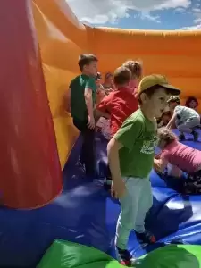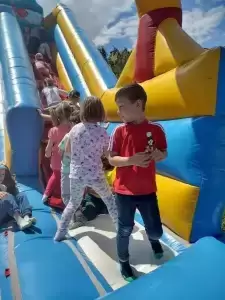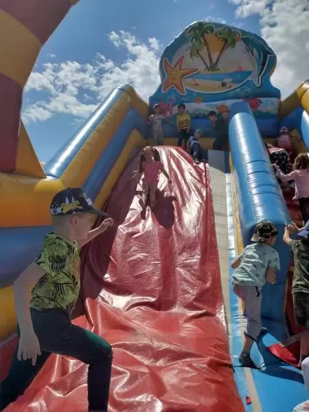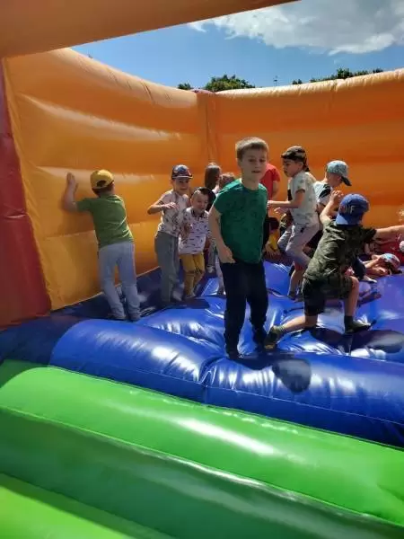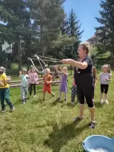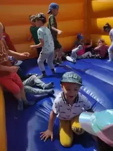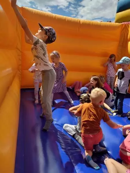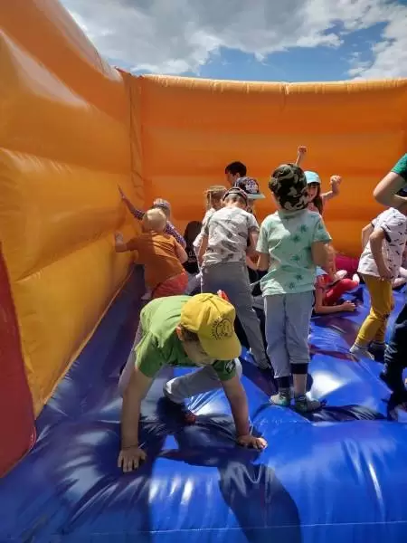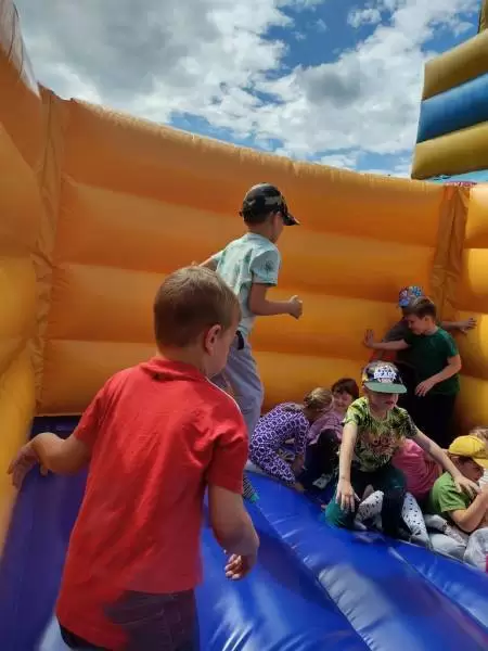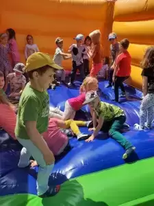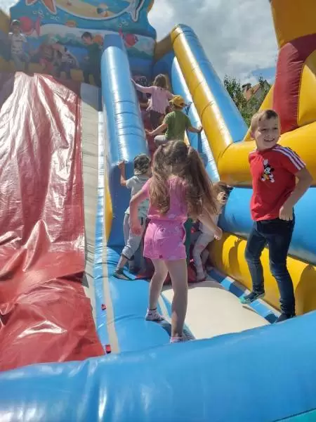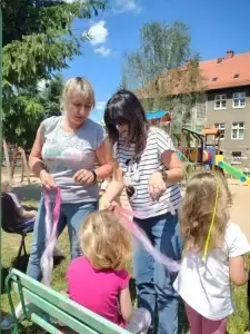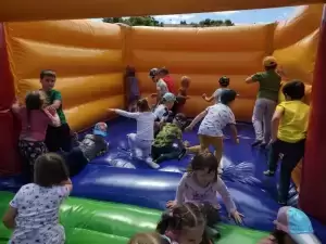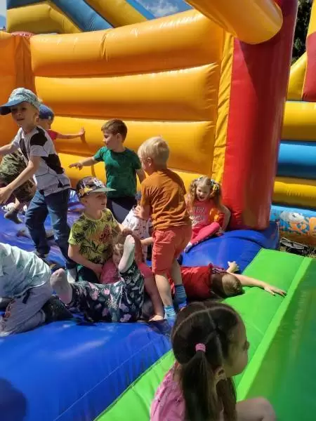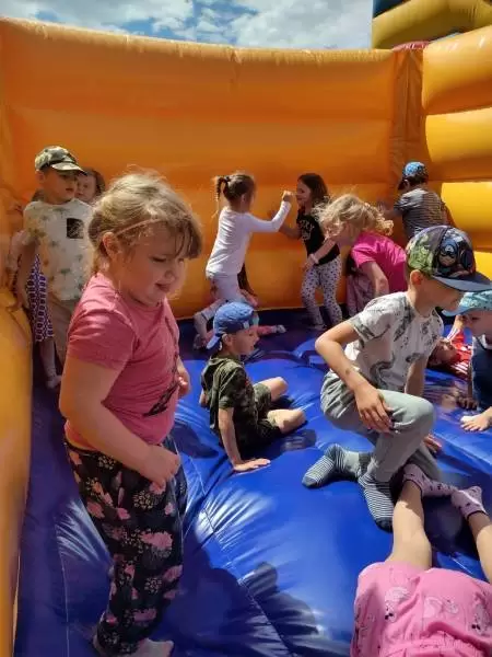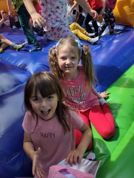 1 czerwca wszystkie dzieci od samego ranka obchodziły swoje święto. Już po śniadaniu wszystkie dzieci wesoło uczestniczyły we wspólnych zabawach przy muzyce. Kolejną niespodzianką były dmuchńce w ogrodzie przedszkolnym, pyszne smakołyki, które urozmaiciły gamę świątecznych smaków. Dzieci bawiły się w ogrodzie przedszkolnym wraz z nauczycielkami, które prowadziły wszystkie zabawy i konkursy. Do atrakcji tego dnia zaliczyć należy również przeróżne korowody, konkursy z nagrodami, zabawy przy wesołej dziecięcej muzyce zapraszającej do tańca na świeżym powietrzu, a także, pokaz baniek mydlanych w wykonaniu wszystkich chętnych dzieci, pod czujnym okiem pań.