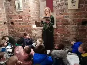 Wieczór rozpoczął się zabawą sensoryczną „Co jest w pudełku?”, podczas której sprawdziliśmy czy nasi uczestnicy bez zmysłu wzroku są w stanie odgadnąć różne przedmioty. Wiele emocji wzbudził konkurs „Jaka to melodia z bajek?”. Tak jak w popularnym programie telewizyjnym dzieci rywalizowały między sobą o zwycięskie podium, które zdobyła Nina Ściana. Główną atrakcją wieczoru była nocna gra miejska „Poszukiwacze skarbu Andersena”, która swój finał miała w Muzeum Regionalnym w Środzie Śląskiej.