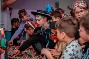 W Środzie byliśmy na naszym lodowisku. Codziennie 27 animatorów przygotowywało czas integracji, zabawy i tańców, które sprawiały wszystkim wiele radości. W czasie warsztatów robiliśmy instrumenty, bo w Oratorium ks. Bosko muzyka jest jak dusza w ciele; maski na bal karnawałowy bo szatan boi się ludzi radosnych. Jednego dnia chłopcy mieli zajęcia sportowe, na których zdobywali flagi w bazach przeciwników, a dziewczyny na zajęciach plastycznych lepiły figurki z modeliny, robiły kwiatki z bibuły oraz dekoracje balowe. Na zakończenie animatorzy zaanimowali zabawę karnawałową, na której wyłoniono króla i królową, tancerzy i najlepsze przebrania. W półkoloniach wzięło udział 84 dzieci, 27 nastoletnich animatorów i 7 wychowawców.