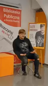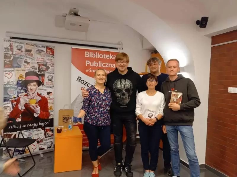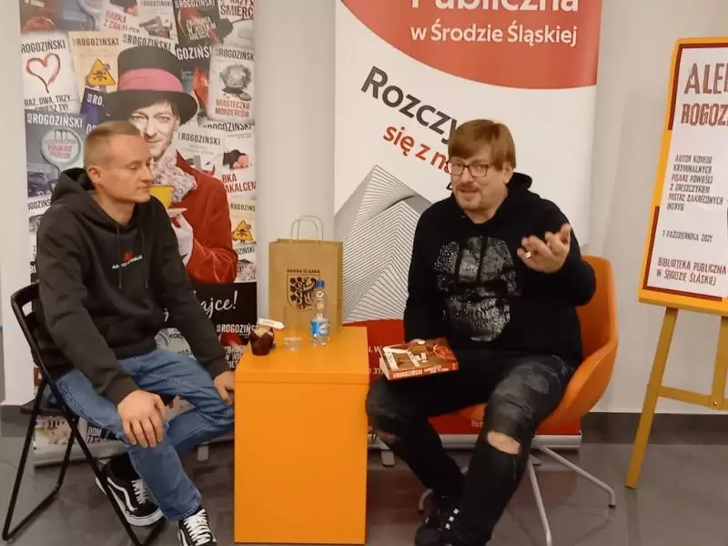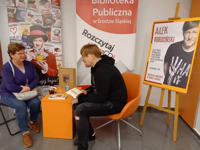 W piątek 1 października w średzkiej bibliotece odbyło się spotkanie z Alkiem Rogozińskim, pisarzem, twórcą komedii kryminalnych i powieści obyczajowych, jak mówi sam o sobie: „ Z zawodu dziennikarz, z pasji kryminalista… to znaczy – twórca kryminałów”.