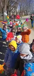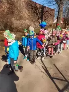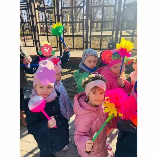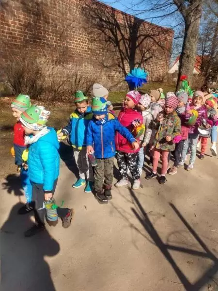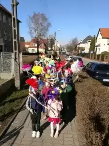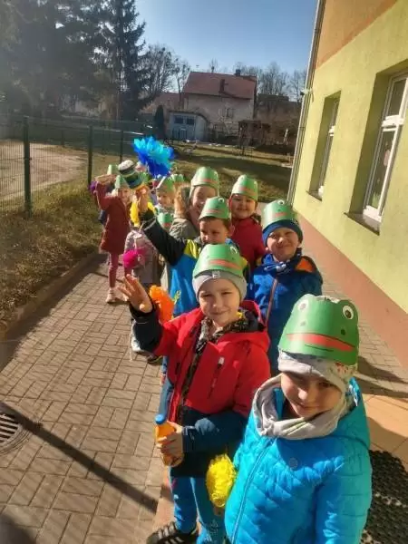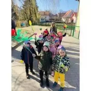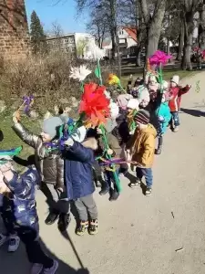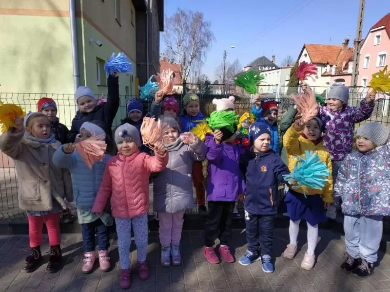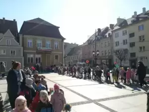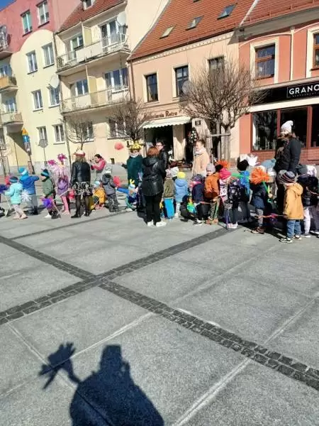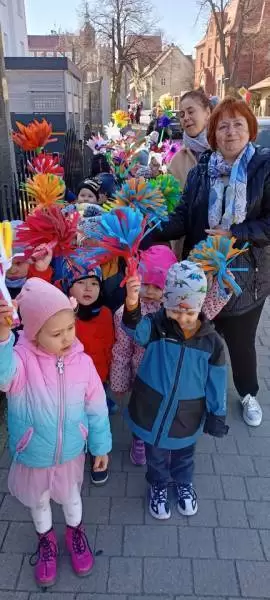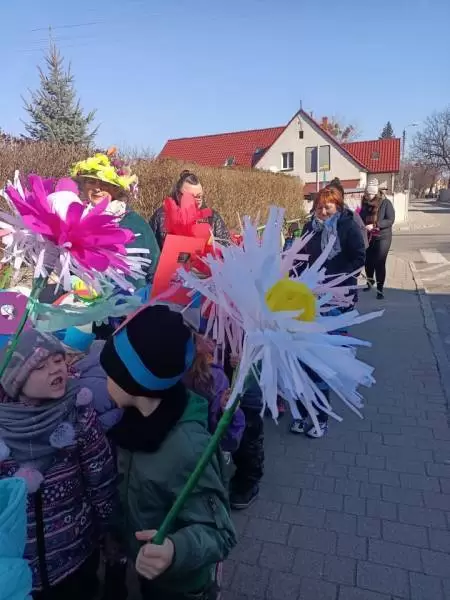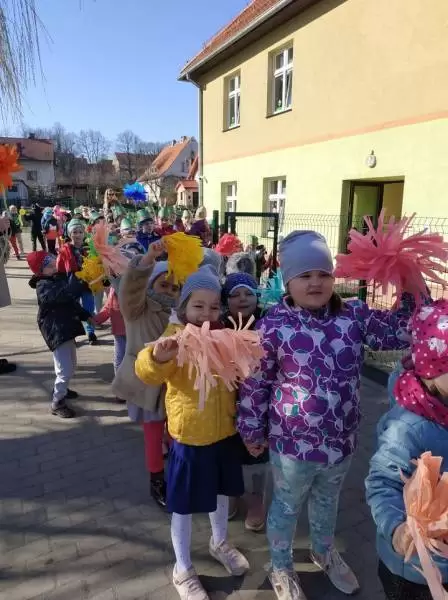 Mimo wielu atrakcji najbardziej oczekiwaną częścią dnia było wyjście na spacer, podczas którego mogliśmy pożegnać zimę i powitać wiosnę. Dzieci radośnie maszerowały w wiosennym korowodzie z kwiatami, przemaszerowały ulicami naszego miasta skandując hasła: „Wiosno przyjdź - Zimo odejdź". Wszędzie wkoło zrobiło się zielono, a słońce zaczęło świecić mocniej. Bardzo się cieszymy, że Wiosnę powitaliśmy. Mamy nadzieję, że Zimę zobaczymy dopiero za rok.