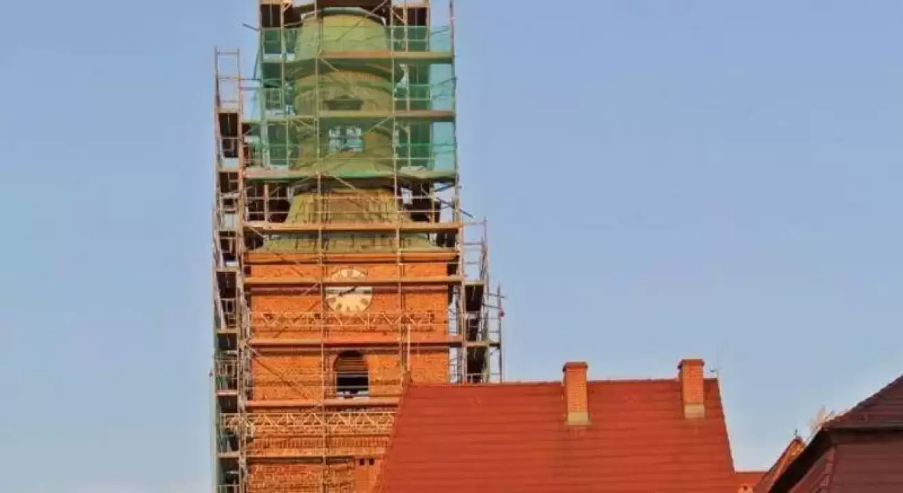 Prace przy rewaloryzacji średzkiego ratusza wkroczyły w kolejną fazę: obecnie remontowana jest m.in. zabytkowa wieża.