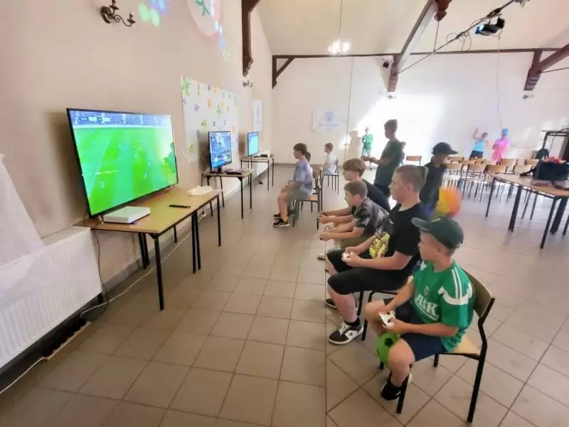 Wszystkie dzieci mogły się pobawić na zamku dmuchanym, który postawiła Bajkowa Kraina Dmuchańców, robić bańki mydlane oraz malować kolorowymi kredami miejscowy teren. Dodatkowo mieliśmy udostępniony wóz strażacki z OSP Bukówek, więc każdy mógł zobaczyć jak to jest być strażakiem. Na sali dzieciom czas umilała pani Natalia z firmy Pasja, która robiła tatuaże oraz malowała dzieciakom buzie. Każdy mały piłkarz mógł się sprawdzić w rozgrywkach gry FIFA, które odbywały się na kilku stanowiskach. Finałową atrakcją wieczoru był Finał Ligi Mistrzów, który wszyscy oglądali na wielkim ekranie.