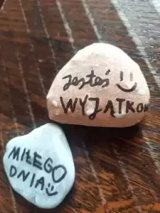 Być może ktoś z Was – drodzy Czytelnicy, znajdzie gdzieś nasze kamyczki na terenie Środy Śląskiej lub w jej okolicach. Weźcie je ze sobą, posilcie się dobrym słowem i przekażcie dalej. Niech kamyki z dobrym słowem wędrują w świat. Niech się darzy. :)