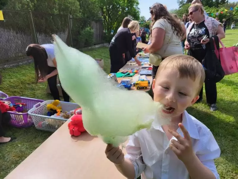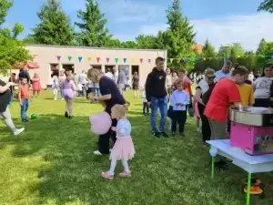 Podczas festynu na dzieci czekało moc atrakcji. Zaraz po występach przygotowanych przez każdą z grup przedszkolnych można było wziąć udział w loterii, skosztować pysznej pieczonej kiełbasy, popcornu czy waty cukrowej.