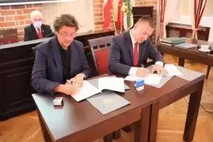 Podczas obrad średzkiej Rady Miejskiej 26 sierpnia burmistrz Środy Śląskiej Adam Ruciński oraz Krzysztof Janus, właściciel pracowni projektowej Archimedia Architekci i Inżynierowie z Poznania, uroczyście podpisali umowę o prace projektowe na opracowanie projektu technicznego budowy nowej szkoły podstawowej na Winnej Górze w Środzie Śląskiej.