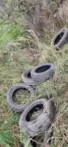 W listopadzie br. mieszkańcy Jugowca i Chwalimierza zauważyli, że na drodze polnej pomiędzy tymi dwoma miejscowościami ktoś wyrzucił 77 opon...