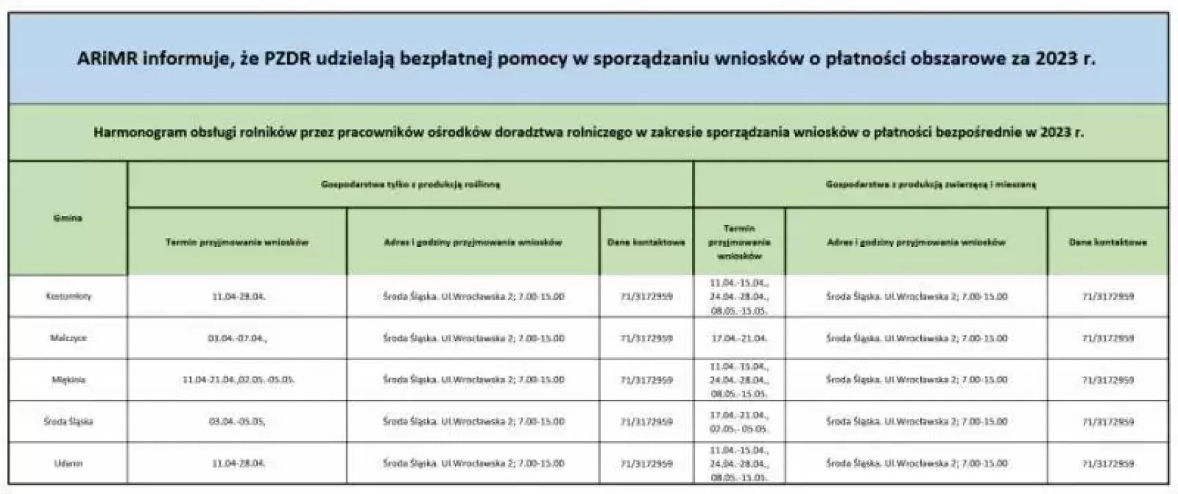 Powiatowy Zespół Doradztwa Rolniczego w Środzie Śląskiej udziela bezpłatnych porad