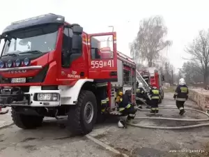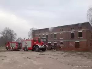 Trwa dogaszanie pustostanu w Ciechowie. Dyżurny Komendy Powiatowej Państwowej Straży Pożarnej w Środzie Śląskiej informację o pojawieniu się ognia w budynku otrzymał o godzinie 12:20.
