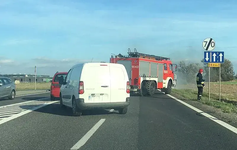 Pożar samochodu na drodze krajowej [aktualizacja]