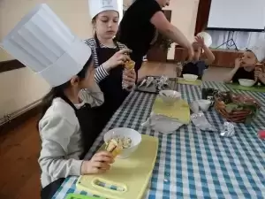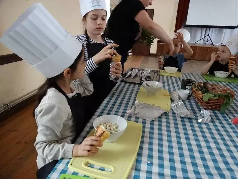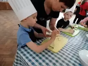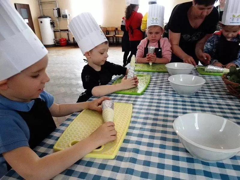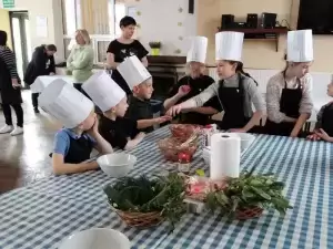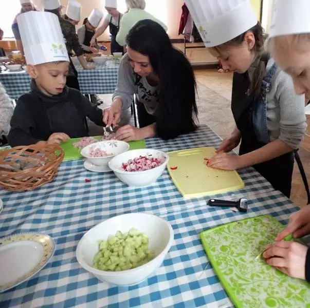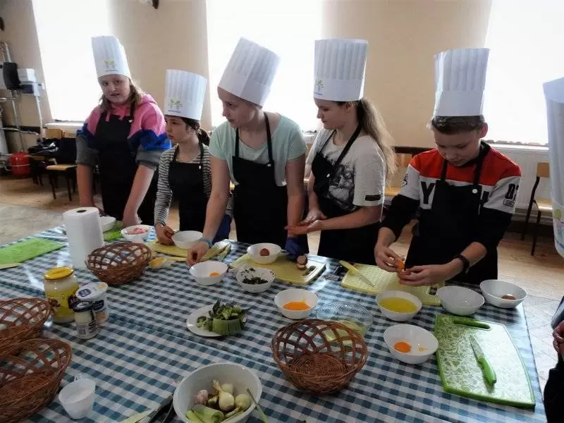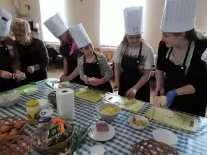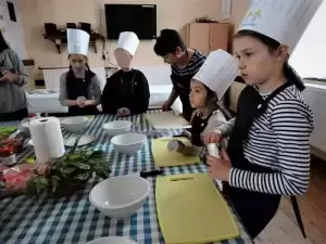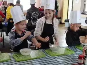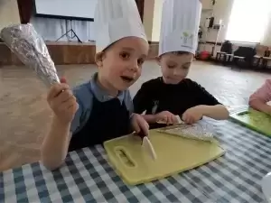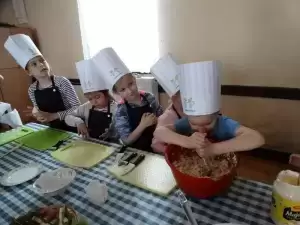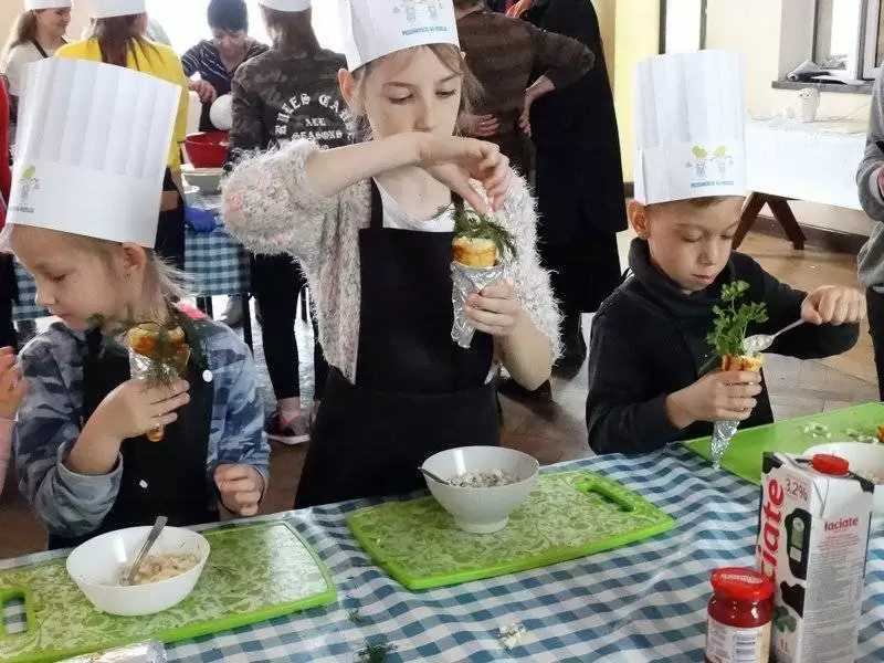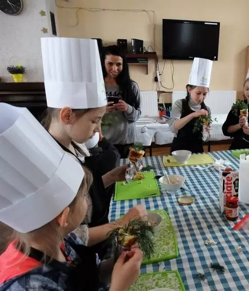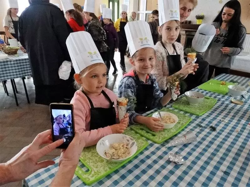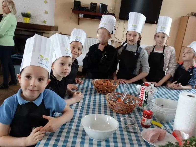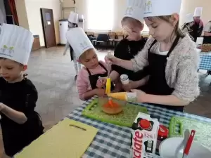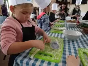 Podczas pierwszej edycji, która odbyła się 13 kwietnia w świetlicy w Przedmościu młodzi uczestnicy przygotowywali wielkanocne marchewki z ciasta francuskiego nadziewane sałatką wiosenną oraz zupkę - krem chrzanową z jajkiem na chmurce.