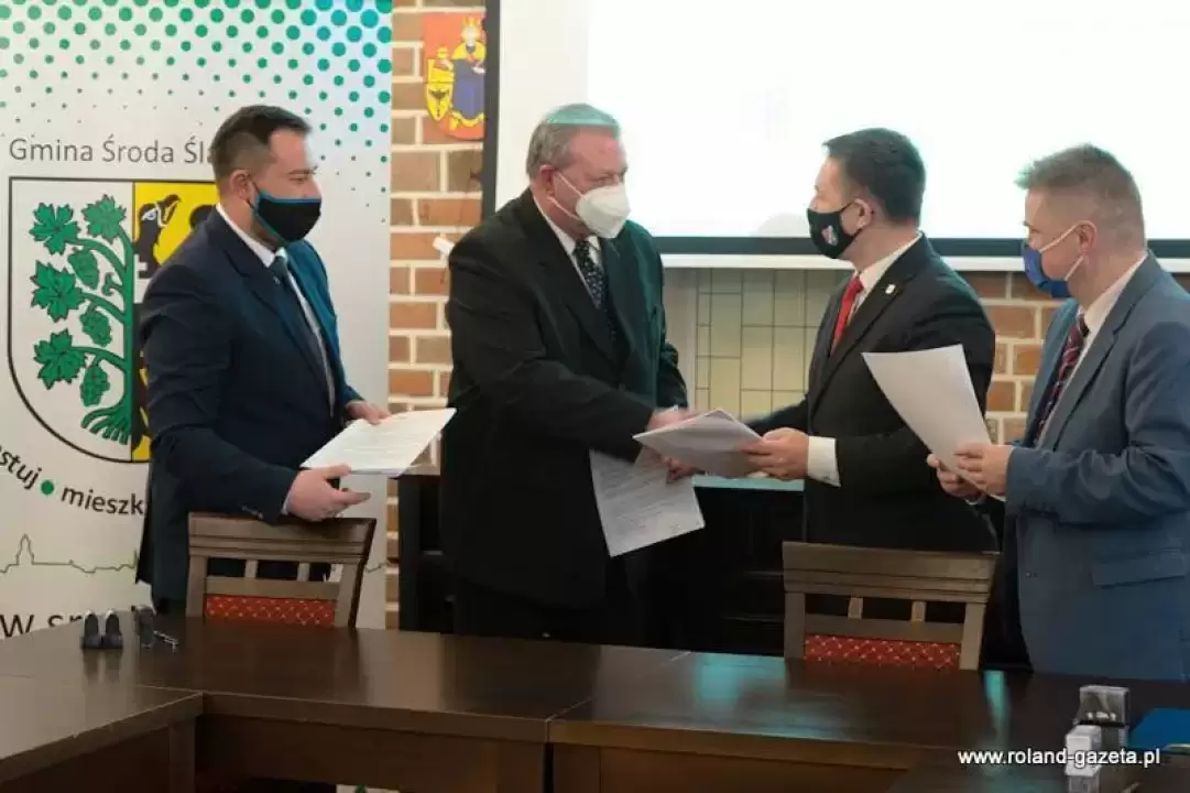 2 lutego w sali sesyjnej Rady Miejskiej w Środzie Śląskiej burmistrz Adam Ruciński i skarbnik Radosław Śliwa podpisali z właścicielami lokalnej firmy budowlanej KIZ s.c. Krzysztofem Staśko i Aleksandrem Staśko kontrakt na budowę Średzkiego Inkubatora Przedsiębiorczości (ŚIP) ze środków Unii Europejskiej.