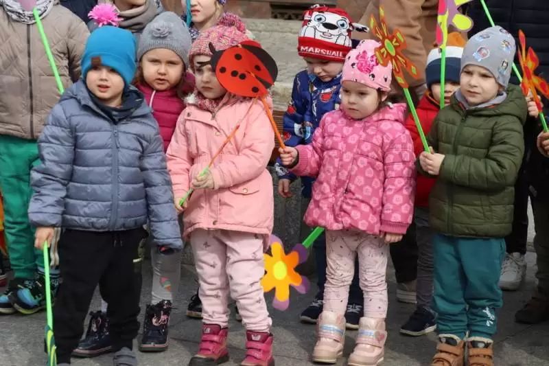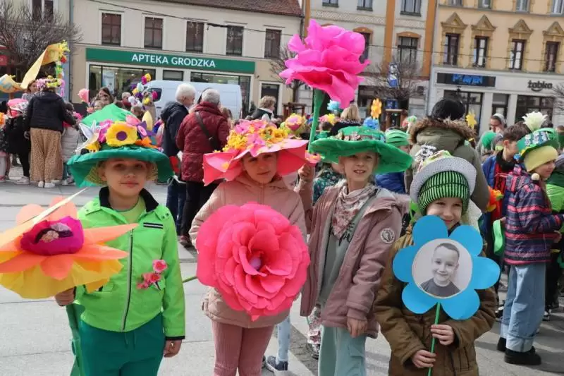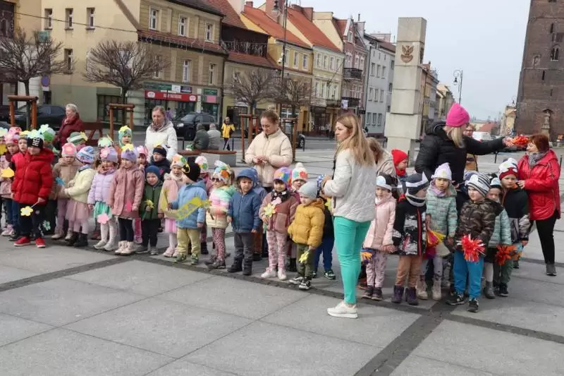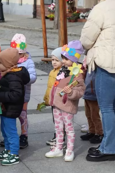 Wiosna nadeszła, a wraz z nią radość i śmiech przedszkolaków i uczniów ze szkoły podstawowej, którzy wraz z burmistrzem Adamem Rucińskim, Przewodniczącym Rady Miejskiej Jerzym Krycińskim i Sekretarz Gminy Judytą Partyka-Basa postanowili przywitać tę piękną porę roku. Wczesnym rankiem grupa dzieci zgromadziła się na głównym placu średzkiego rynku, trzymając w rękach kolorowe kwiaty i wianki.