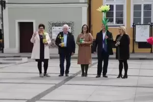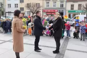 Dzieci z Przedszkola nr 3 „Pod Topolą” wraz z dyrektor Aleksandrą Karcz-Cieślą i wychowawcami przywitały się po czym odśpiewali piosenki przywołujące wiosnę. Wręczyły też włodarzowi kwiaty symbolizujące początek kalendarzowej wiosny.