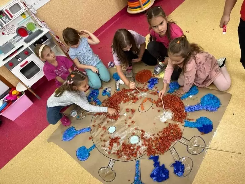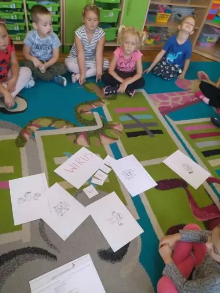 Na koniec dzieci wykonały pracę plastyczną pt. „Wirus widziany oczami przedszkolaka”.