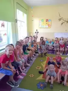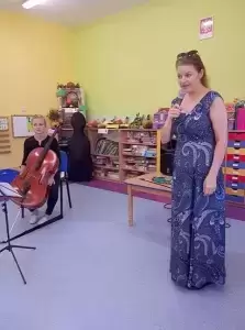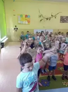 Należy nadmienić, że w przedszkolu cyklicznie raz w miesiącu odbywać się będą zajęcia muzyczne Spotkanie z Muzyka prowadzone przez panią Katarzynę Kurczewską. Takie zajęcia, również odbyły się we wrześniu. Udział w nich wzięły prawie wszystkie grupy z przedszkola. Między innymi Kangurków świetnie bawiła się na takowych zajęciach.