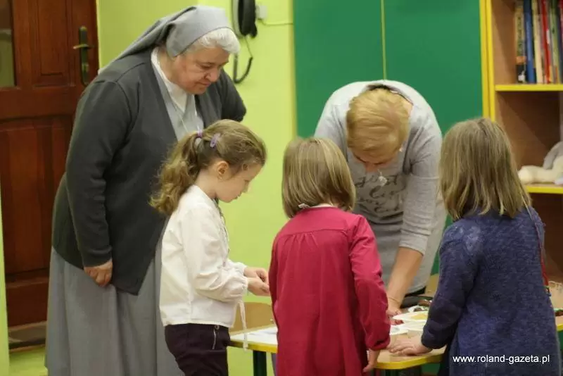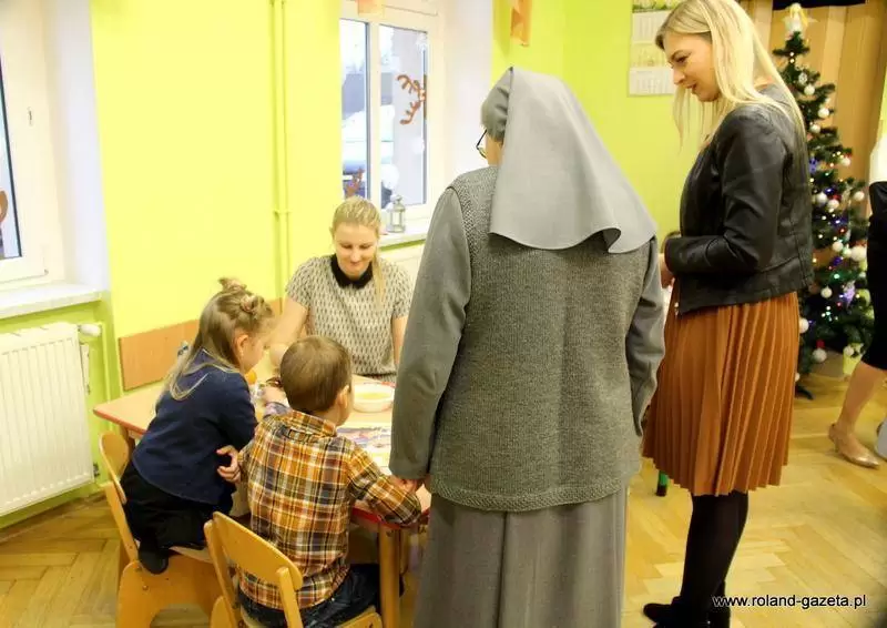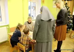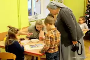 Spotkanie rozpoczęła siostra, z którą uczestnicy przeszli do kaplicy, aby zaśpiewać kilka kolęd. Gdy wszyscy w atmosferze przybliżającej do Bożego Narodzenia wrócili do klasy, na dzieci czekały konkurencje sprawdzające ich wiedzę na temat tych wyjątkowych świąt. Na początku pojawiły się pytania oraz zagadki. W tym miejscu trzeba przyznać, że dzieci świetnie sobie radziły, znały odpowiedzi na pytania – Ile potraw znajduje się na wigilijnym stole? Ile dni trwają Święta Bożego Narodzenia? Jak nazywa się okres poprzedzający święta? I wiele innych. Każda z grup w tej konkurencji zebrała maksymalną ilość punktów, które przydzielały aniołki w formie cukierków.