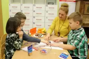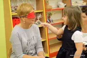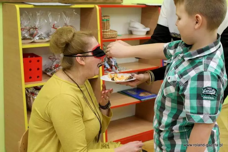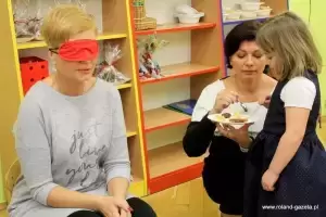 Na zakończenie panie organizatorki przygotowały konkurs dla dzieci polegający na rozpoznawaniu przedmiotów związanych ze Świętami Bożego Narodzenia poprzez dotyk, a na wychowawców czekały smakołyki, które rozpoznawali poprzez smak.