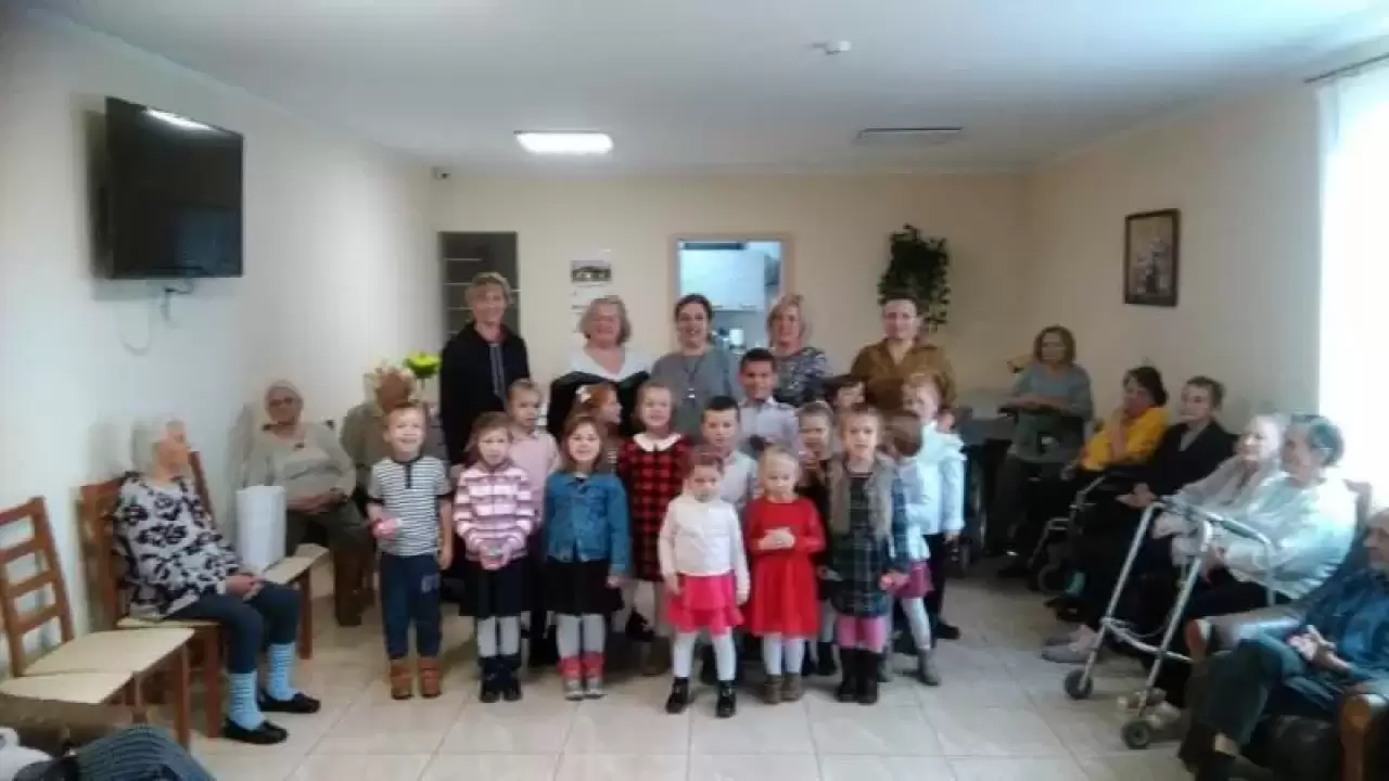 3 grudnia dzieci z przedszkola Publicznego w Ciechowie, wraz z panią dyrektor Bożeną Błaszczyszyn, panią z rytmiki Anna Ogińską i nauczycielką Moniką Smelą, odwiedziły Dom Pomocy Społecznej w Krynicznie.