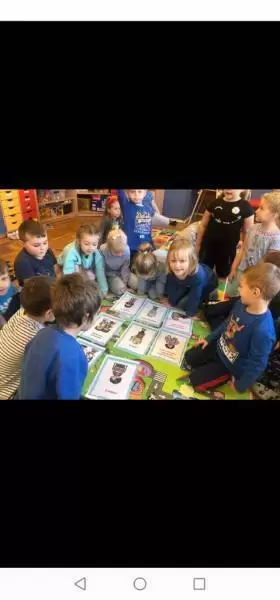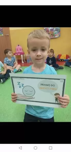 Przedszkolaki w tym dniu przyszły ubrane na niebiesko, słuchały i oglądały ciekawe opowiadania dotyczące praw dzieci. Miały okazję także porozmawiać i dowiedzieć się więcej o swoich prawach od aspiranta sztabowego z Komendy Powiatowej Policji w Środzie Śl., Pana Piotra Chrzanowskiego.