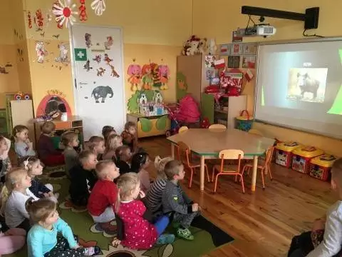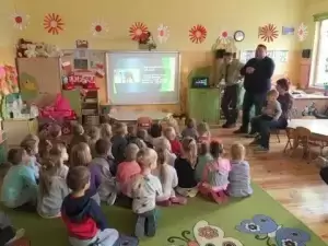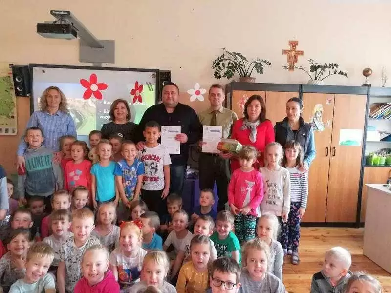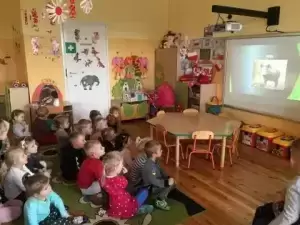 Dzieci obejrzały film edukacyjny o leśnych zwierzętach. Dowiedziały się jak należy "bezpiecznie" zachowywać się w lesie. Z zainteresowaniem słuchały pogadanki o dokarmianiu zwierząt oraz ich zwyczajach, ponadto otrzymały dyplomy, podziękowania i upominki za udział w akcji.