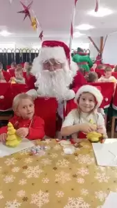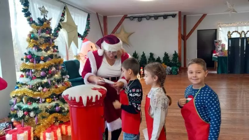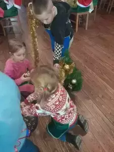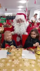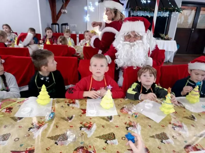 W trakcie warsztatów dzieci stworzyły naturalną świeczkę z wosku pszczelego oraz ozdabiały świąteczną choinkę. Każdy mógł ozdobić tak jak podpowiadała mu wyobraźnia. Dekorowana była także świąteczna torebka, do której spakowane zostały wszystkie upominki. Podczas spotkania był czas na wspólne zdjęcia, na napisanie listu do Mikołaja oraz wspólne tańce! W przerwie dzieci popijały świąteczną herbatkę, a w tle słychać było świąteczne przeboje.