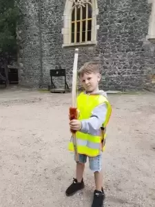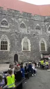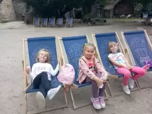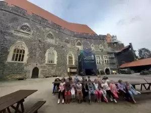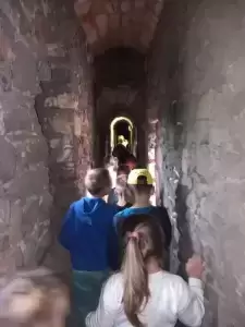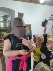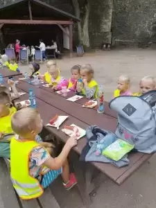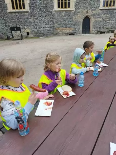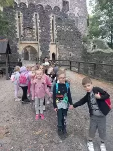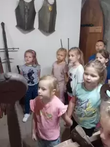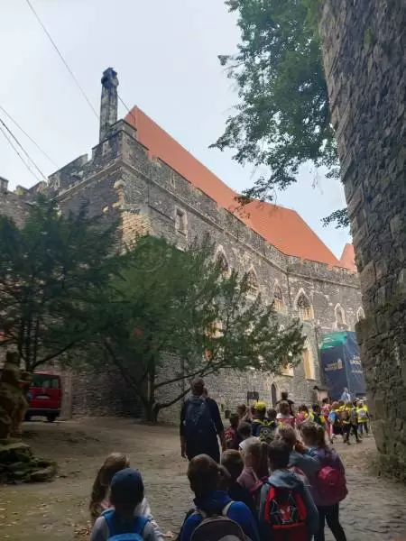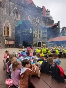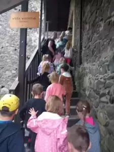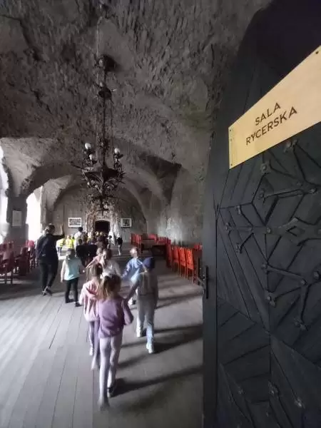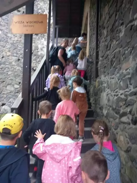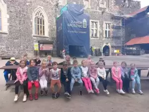 Zwiedzanie Zamku to szansa na poznanie historii i wielu legend związanych z twierdzą. Dzieci stojąc w cieniu tych gigantycznych budowli, mogły wyobrazić sobie jak wyglądało życie w czasach rycerzy i księżniczek. Pan Przewodnik, z wielkim zaangażowaniem wyjawił Nam wiele tajemnic Zamku, oprowadził po salach, komnatach, wąskich korytarzach a nawet pokazał gdzie znajdował się skarbiec! Dzieci zadawały pytania, mogły przymierzyć rycerski hełm oraz obejrzeć wiele eksponatów czy mebli. Wielką atrakcją było też ognisko i pieczone kiełbaski. Wizyta na Zamku była niezapomnianą i inspirującą podróżą w czasie!