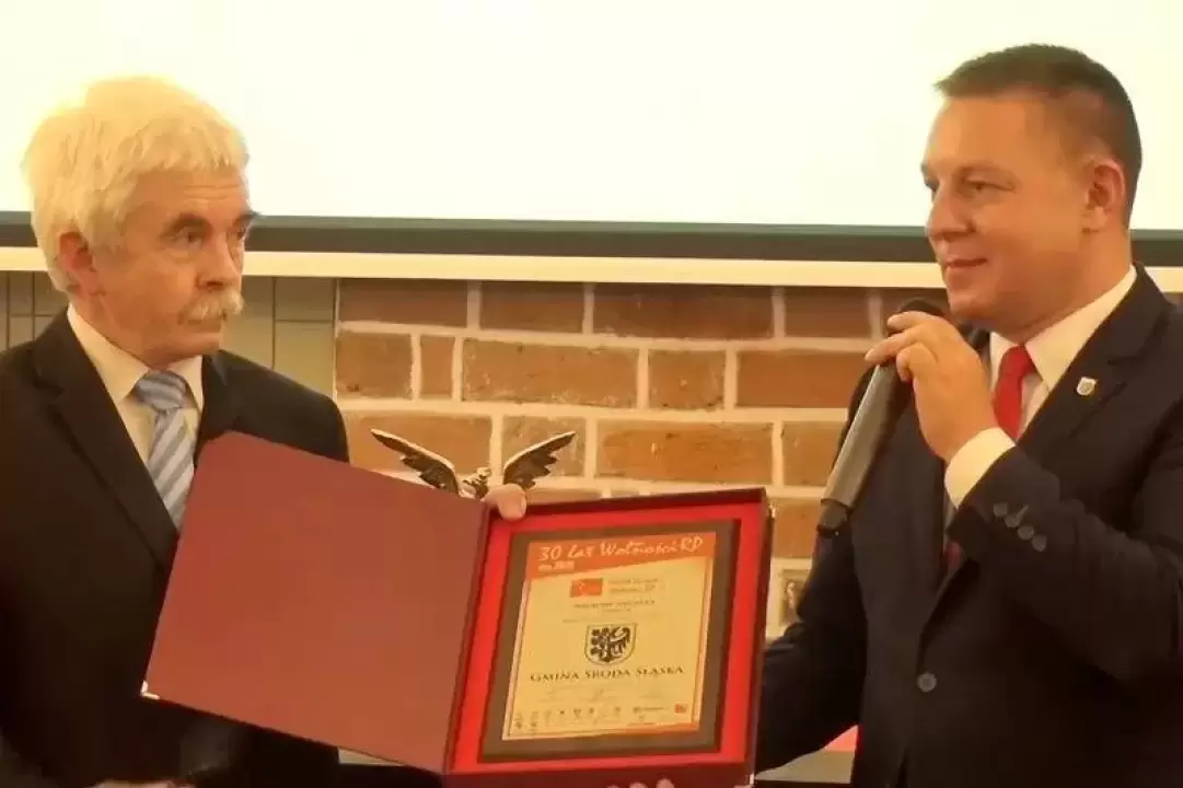 Przekazanie nagrody Orła Polskiego Samorządu na ręce Przewodniczącego Rady Miejskiej w Środzie Śl. (wideo)