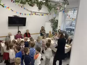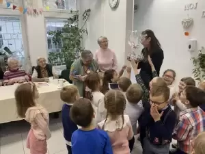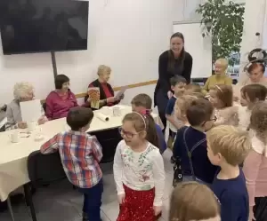 17.11.2023 r. przybyły do seniorów dzieci z Niepublicznego Przedszkola Sióstr Salezjanek w Środzie Śląskiej wraz z Siostrą Dyrektor Magdaleną Gierą i Panią Katarzyną Podolską.