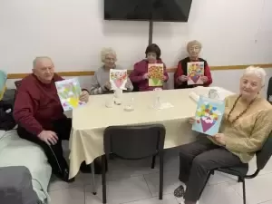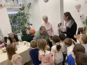 Z okazji Dni Seniora dzieci złożyły seniorom piękne życzenia, wręczyły seniorom przygotowane przez siebie na tę okazję kartki oraz zaśpiewały dla seniorów piosenki. Wizyta dzieci z grupy Tygrysków wniosła wiele radości i uśmiechu. Seniorzy nie ukrywali wzruszenia i byli pod ogromnym wrażeniem występu dzieci i ich pięknego, odświętnego wyglądu.