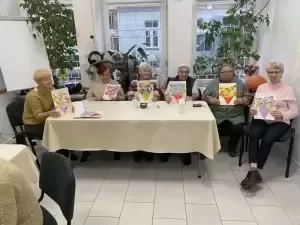 Z tej okazji Seniorzy wręczyli na ręce Pani Katarzyny skromny upominek jako wyraz wdzięczności za pamięć o seniorach i przygotowanie specjalnie dla nich takiej niespodzianki.