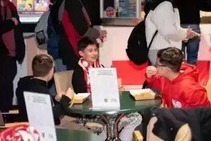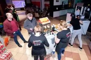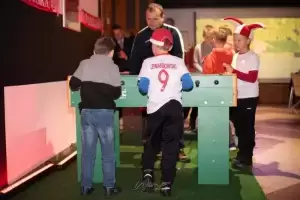 Na każdego przybyłego kibica w foyer czekało studio meczowe, konkursy z nagrodami, strefa gier: piłkarzyki stołowe, Xbox oraz strefa gastro od Catering Merkury, który serwował nam prawdziwie piłkarskie napoje i przekąski w atrakcyjnych cenach.