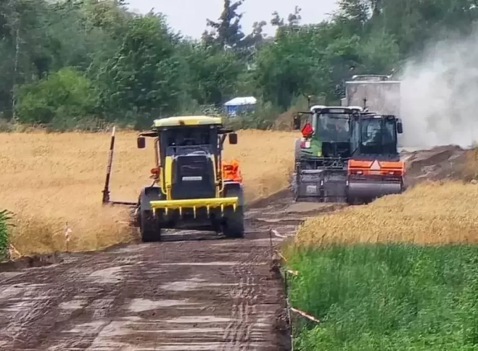 Trwają intensywne roboty przy budowie drogi transportu rolnego w Świętem, która będzie pełnić funkcję lokalnej "obwodnicy" miejscowości. Prace idą pełną parą - aż się kurzy!