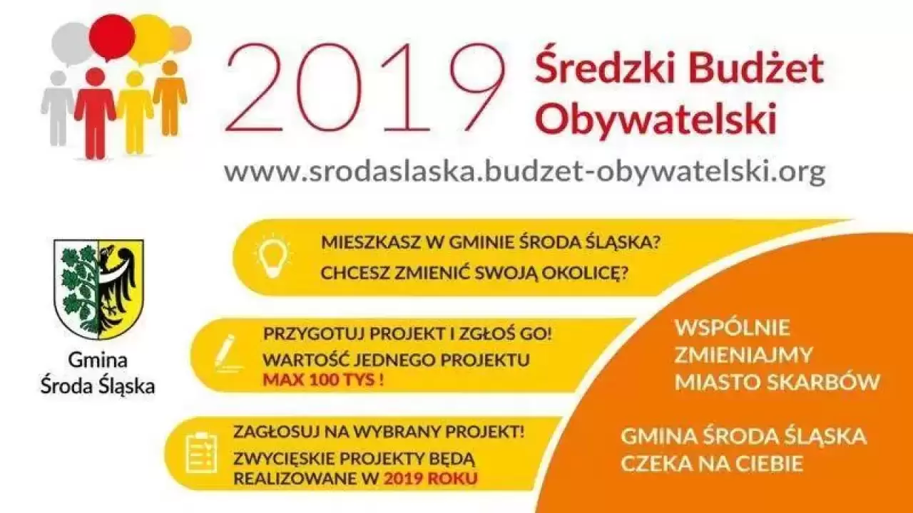 W ubiegłym roku średzka Gmina po raz pierwszy wdrożyła projekty w ramach Budżetu Obywatelskiego. Tegoroczna, druga edycja programu, niesie ze sobą kilka istotnych zmian. Zwiększona została o 100 tys. zł pula środków oraz, co najważniejsze, do programu można zgłaszać projekty na terenie całej Gminy Środa Śląska.