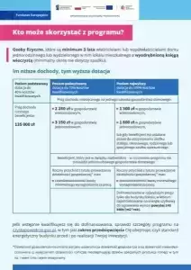podstawowy poziom – do 40% dofinansowania, próg dochodu: 135 000 zł/rok