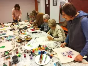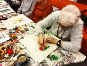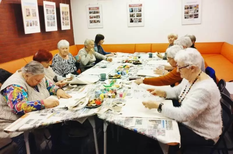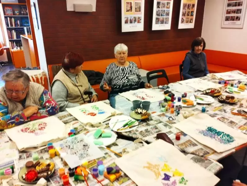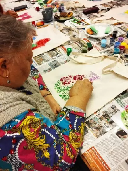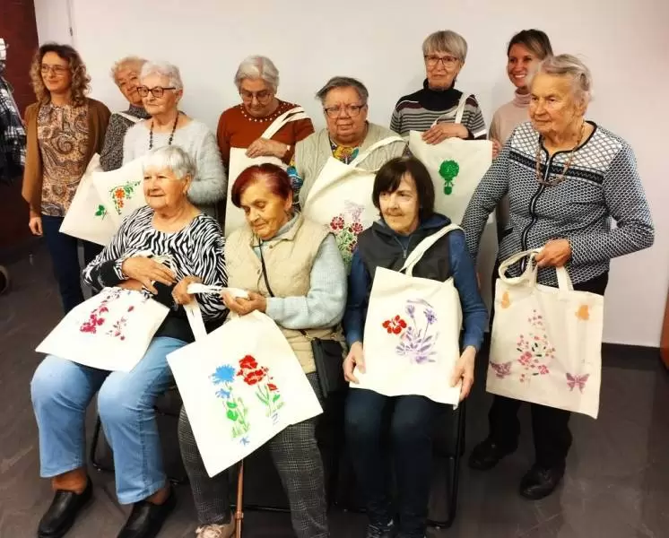 Wizyta odbyła się w sympatycznej atmosferze, która sprzyjała artystycznej integracji. Seniorzy podczas warsztatów za pomocą farb do tkanin projektowali swoje własne zakupowe eko torby. A wszystko to w trosce o środowisko, gdyż ekologiczne torby ze względu na swoją praktyczną użytkowość powodują redukcję zużycia toreb foliowych. Oprócz walorów ekologicznych torby wywołały wiele pozytywnych emocji wśród uczestników. Każdy powstały projekt był oryginalny i indywidualny.