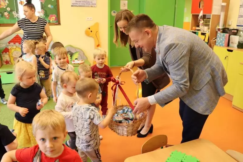 Prezent od Gminy Środa Śląska pomogły rozpakować dzieci, a serce uroczyście odsłonili burmistrz i dyrektor żłobka. Podopieczni placówki z pomocą opiekunek chętnie zapełnili serce pierwszymi nakrętkami, które przeznaczone będą na cele charytatywne. Burmistrz złożył także maluchom życzenia z okazji ich święta i wręczył słodką niespodziankę.