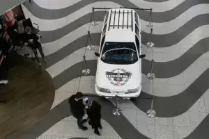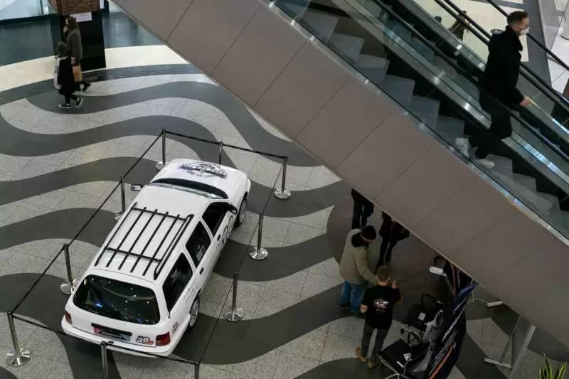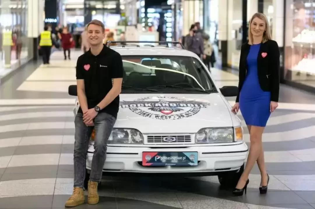 Biały Ford Sierra kombi stoi przy wejściu głównym do Magnolii Park, przy schodach ruchomych. Obok auta Jurek Owsiak z wielkiego plakatu zaprasza na jej aukcję WOŚP na Allegro. Internetowa licytacja ruszyła w czwartek 13 stycznia, od złotówki. W sobotę rano cena przekroczyła 35 tys. zł.
