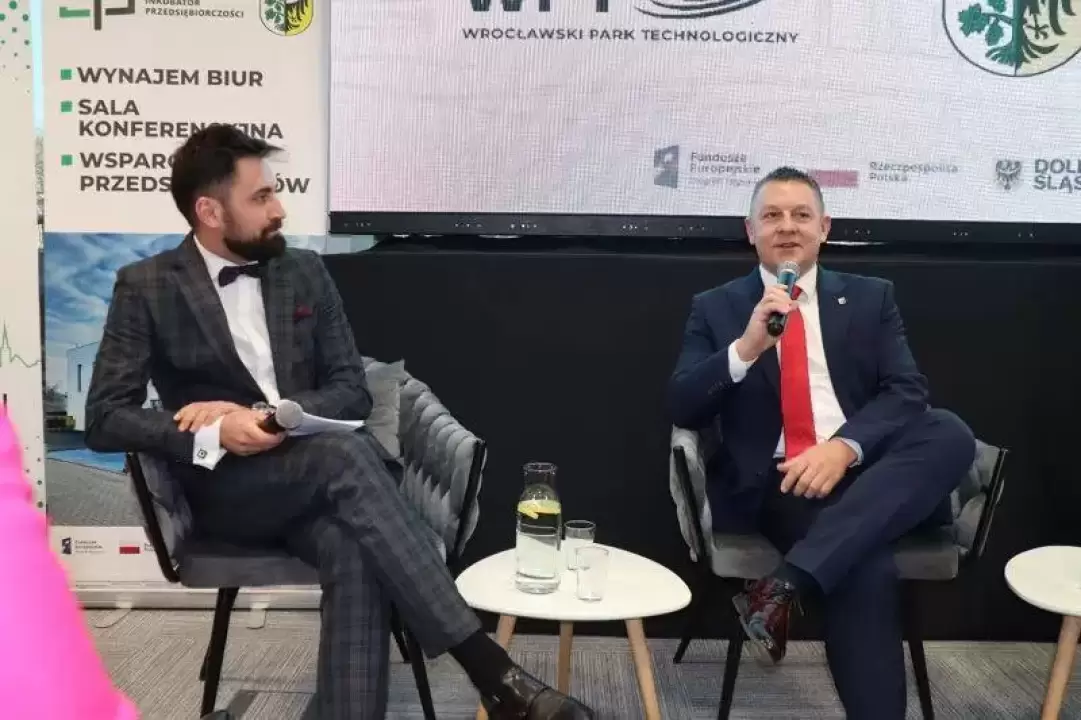 Burmistrz Adam Ruciński: - Trudno tak przedstawić to w kilku słowach, ponieważ tak jak powiedział Pan Rafał (Ratuszniak – red.), były meandry, zakręty, ale jest sukces. Gdyby sięgnąć głęboko do pamięci, to myślę, że około dekady, a może i więcej, ten pomysł – projekt kiełkował. Kiełkował z kilku powodów. Z jednej strony, jak Państwo wiecie, nasze miasto, gmina, powiat, nasz ośrodek rozwoju gospodarczego jest dynamicznym ośrodkiem i przecież od prawie 20 lat działają tutaj dwie podstrefy Legnickiej Specjalnej Strefy Ekonomicznej i mamy silne impulsy rozwojowe. Ale najczęściej są to firmy większe, duże, przemysłowe i ten rozwój uznaliśmy, dyskutując jako samorządowcy jeszcze kiedy przygotowywaliśmy się do tych pierwszych moich zwycięskich wyborów w 2014 roku, bo to był ten czas, kiedy budowaliśmy program z naszym Stowarzyszeniem RAZEM dla Ziemi Średzkiej uznaliśmy, że warto zainwestować i pomyśleć o tych mniejszych przedsiębiorcach, małych, mikro przedsiębiorcach, bo duże sobie poradzą. Natomiast brakowało w Środzie Śląskiej tego elementu wsparcia, infrastruktury wręcz, dla tych mniejszych podmiotów. Przypominam sobie jeszcze z jednych z poprzednich zarządów LSSE myśleliśmy w roku 2014/2015, jak już zostałem przez mieszkańców wybrany na funkcję burmistrza o tym, że LSSE miała pomysł budowania hal przemysłowych na wynajem. Słowo wynajem tutaj pojawia się jako taka propozycja prowadzenia działalności w obiektach nie swoich, które nie wymagają aż takich dużych nakładów finansowych, bo nie każdy przedsiębiorca przecież ma. Nie ukrywam, że także ważnym elementem tej całej genezy de facto było to, że ten teren straszył. Ja przez trzy kadencje byłem tutaj radnym Rady Miejskiej i to był mój okręg wyborczy. Nieopodal 300 m stąd wiele lat mieszkałem i wielu mieszkańcom Środy Śląskiej nie podobało się to, co tutaj widzieli – dawne zakłady mięsne. Myślę, że to było takim wewnętrznym średzkim motywem. Nie ukrywam, że miałem też osobisty jeden powód. W latach 2010-2014 pracowałem we Wrocławskim Centrum Badań EIT Plus i tam też budowaliśmy różne instytucje otoczenia biznesu. Też mieliśmy przygotowane w projektach laboratoria na wynajem. Słowo wynajem pojawia się tutaj wielokrotnie, gdyż to jest słowo klucz, które mówi, że można mieć dostępną infrastrukturę, niekoniecznie inwestując własne pieniądze. To jest taka kilkuwątkowa geneza tego projektu.