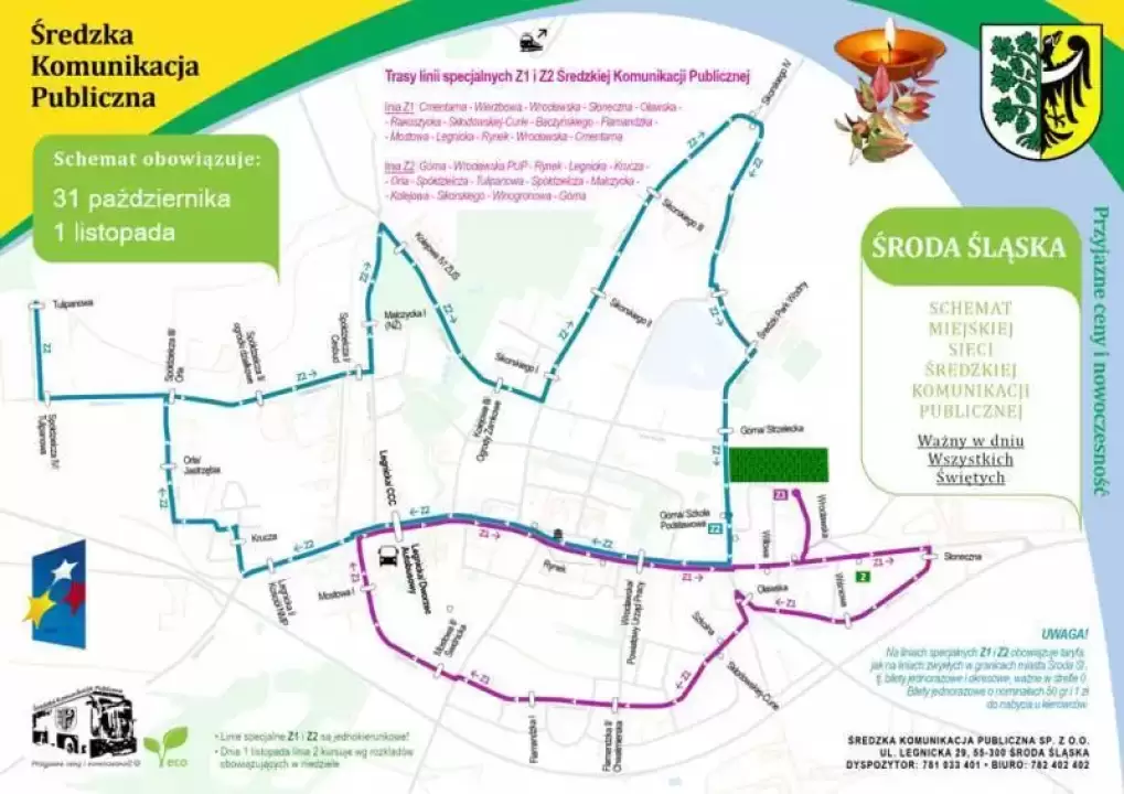 Średzka Komunikacja Publiczna uruchamia linie specjalne Z1 i Z2 w dniach 31 października (niedziela) i 1 listopada (poniedziałek).