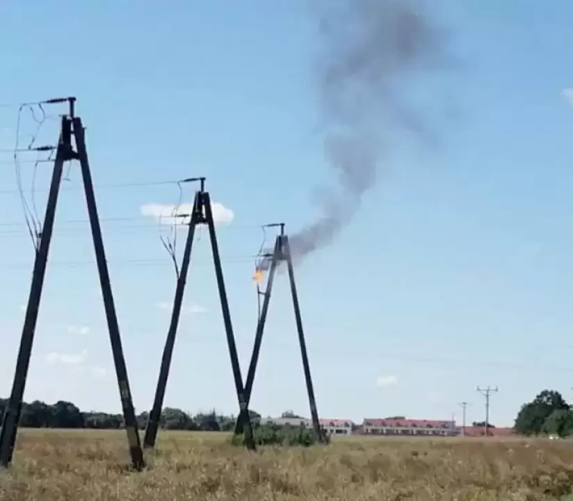 Dzisiaj rano, w pobliżu stacji kolejowej w Środzie Śląskiej zapalił się słup energetyczny.