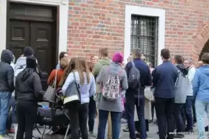 Następnie wycieczka przeszła po dawnym kwartale żydowskim.Tu o historii gminy żydowskiej w Środzie Śląskiej opowiedział lokalny Kustosz Zbigniew Aleksy.