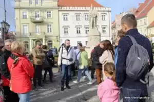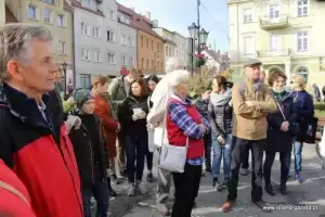 Podczas spaceru dr Grzegorz Borowski dyr. Muzeum Regionalnego w Środzie Śląskiej opowiedział o rozwoju średniowiecznego miasta w połowie XIV wieku.