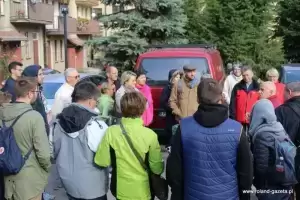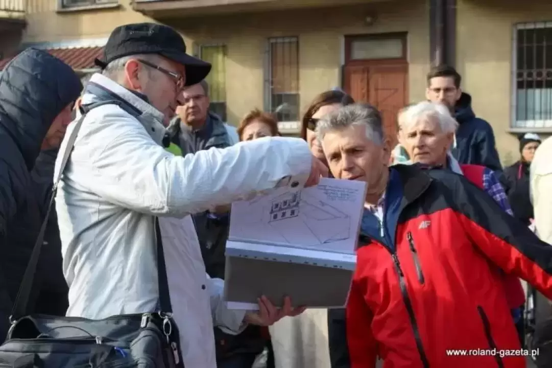 W czasie przechadzki doszliśmy do miejsca odkrycia skarbu na ulicę Daszyńskiego. To tu podczas wykonywania prac budowlanych odnaleziono gliniane naczynie z groszami praskimi. Opowieść o znalezisku przedstawił dr Przemysław Kulesza z Muzeum Narodowego we Wrocławiu.