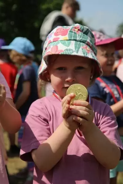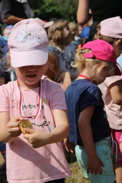 Na zakończenie zawodów każdy z przedszkolaków otrzymał złoty medal.