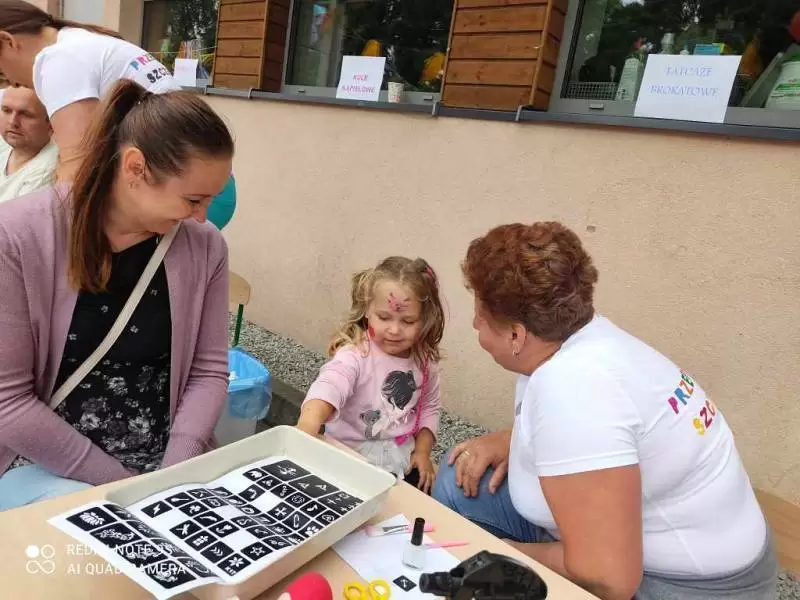 Dodatkowe atrakcje to: dmuchańce, malowanie twarzy, brokatowe tatuaże, fotobudka, wyplatanie warkoczyków, zamykanie w bańce mydlanej oraz warsztaty w tworzeniu kul kąpielowych. Nie zabrakło również dobrego jedzenia: słodkiej kawiarenki (pysznych ciast upieczonych przez rodziców), kromki domowego chleba ze smalcem i ogórkiem oraz kiełbasek z grila.
